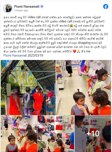 පසුගිය කාලය පුරාවටම පියුමි සමාජ මාධ්ය හරහා අසරණ වෙච්ච පුද්ගලයන්ට උදව් උපකාර කරන්න අමතක කළේ නැහැ.ඒ වගේම තමයි මිනිස්සු වෙනුවෙන් නිතර හඩ නගන ඇය පසුගිය දවසක ස්වර්ණවාහිනී ආයතනය තුළ ඇතිවු ගැටලුකාරී තත්ත්වයක් මත බොහෝ දෙනෙක් චෝදනා කරපු රංගන ද සිල්වා පිළිබඳව දීර්ඝ සටහනක් තමන්ගේ මුහුණු පොතට එකතු කරලා තිබුණා.